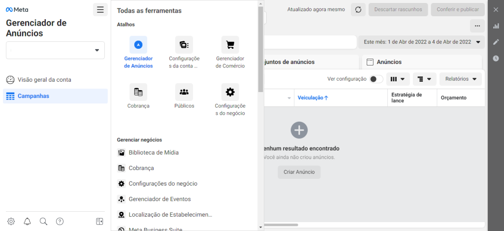 Para criar um anúncio no Instagram é necessário acessar o Gerenciador de Anúncios do Facebook. Também vale lembrar que essa ação é um pouco diferente de impulsionar um post.