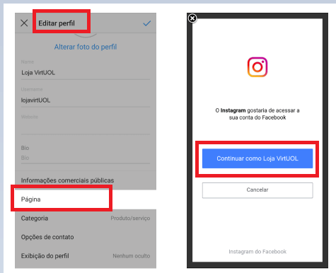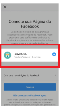 Lembra que falamos que para vender no instagram é preciso ter a loja virtual conectada a uma página do Facebook?
