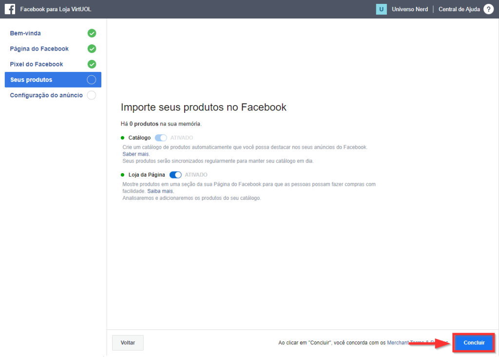 Clique em “Avançar” e, na tela seguinte, aperte no botão “Concluir” para importar todos os seus produtos: